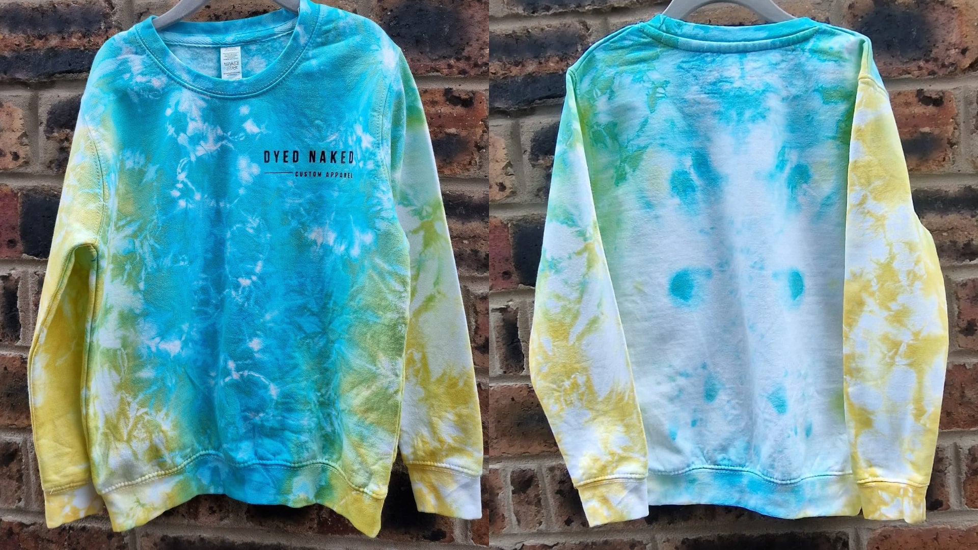 Every single item of apparel is custom tied and dyed by Dyed Naked, so two items are never identical. Due to this technique, patterns and colours may vary slightly as colour combinations may create further colour mutations.